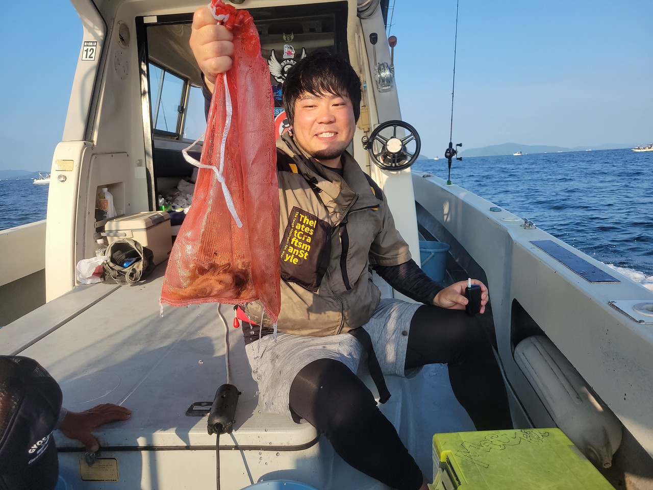 この時期限定のイイダコ釣りでした。 竿をしゃくったり止めたりしているとテンヤにイイダコが乗ってきて重くなります。 それを大きくアワセを入れて巻き上げます。 1位のメンバーが43匹で、みんな30匹くらい釣れました。 昔に比べるとあまり数は釣れなくなってしまいましたが食べて美味しい旬のイイダコ釣りを楽しみました。