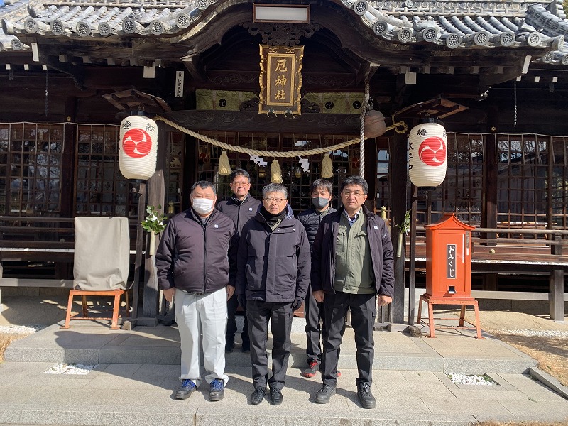 本日、氏神様の厄神社(やくじんじゃ)へ安全祈願に行って参りました。 今年は、役員、工事事業部倉敷支店の支店長・次長、総務部の安全担当の計6名でお参りしました。 なお、他の事業所もそれぞれの氏神様へ安全祈願にお参りしています。 無事故無災害の願いを込めて安全第一を心がけ、事業を行います。ご安全に! 2026年1月30日 代表取締役社長 山田 啓吾